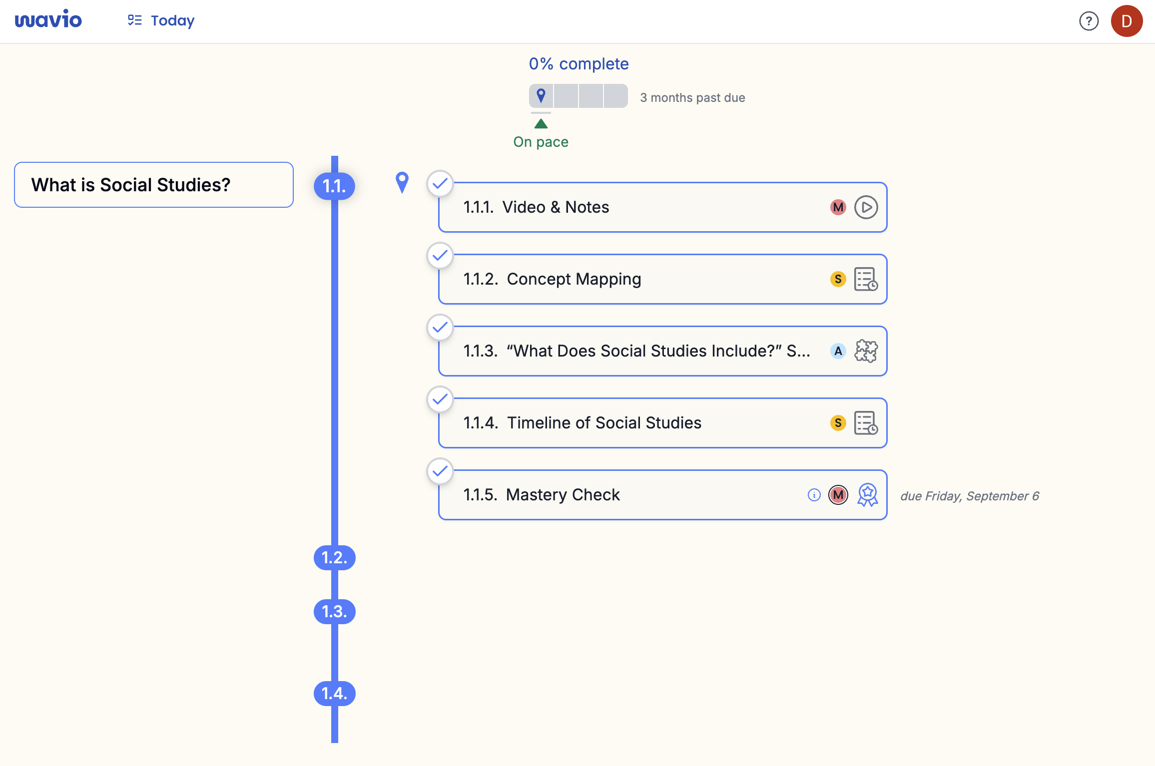 - The lessons for the selected unit appear as a timeline along the left side of the page.